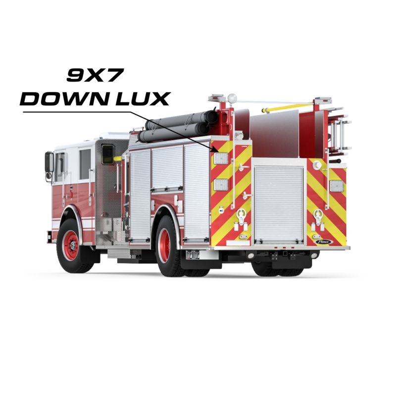 The Down Lux Series provides intense scene lighting in an ultra-compact design. The Down LUX features unique downward 50° spread, providing powerful visibility for any emergency scene. The Down Lux is the perfect LED scene light for any firetruck, ambulance, or command vehicle in your fleet.