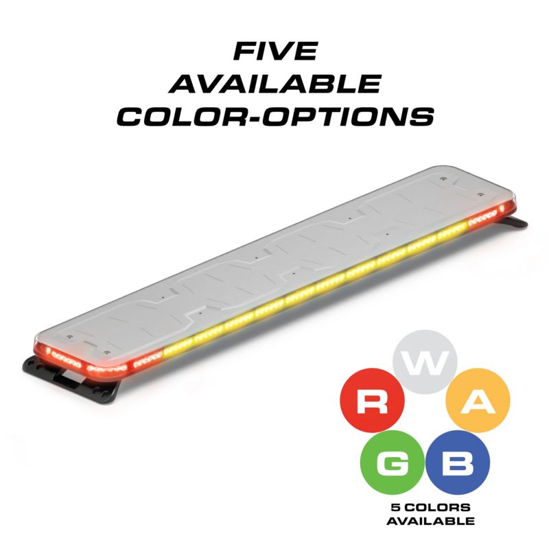 Single-color lightbars for emergency warning use. User configurable in Red, Blue, Amber, White and Green, the Fusion-S line offers a 40° degree optic that is 60° brighter than the previous Fusion family.