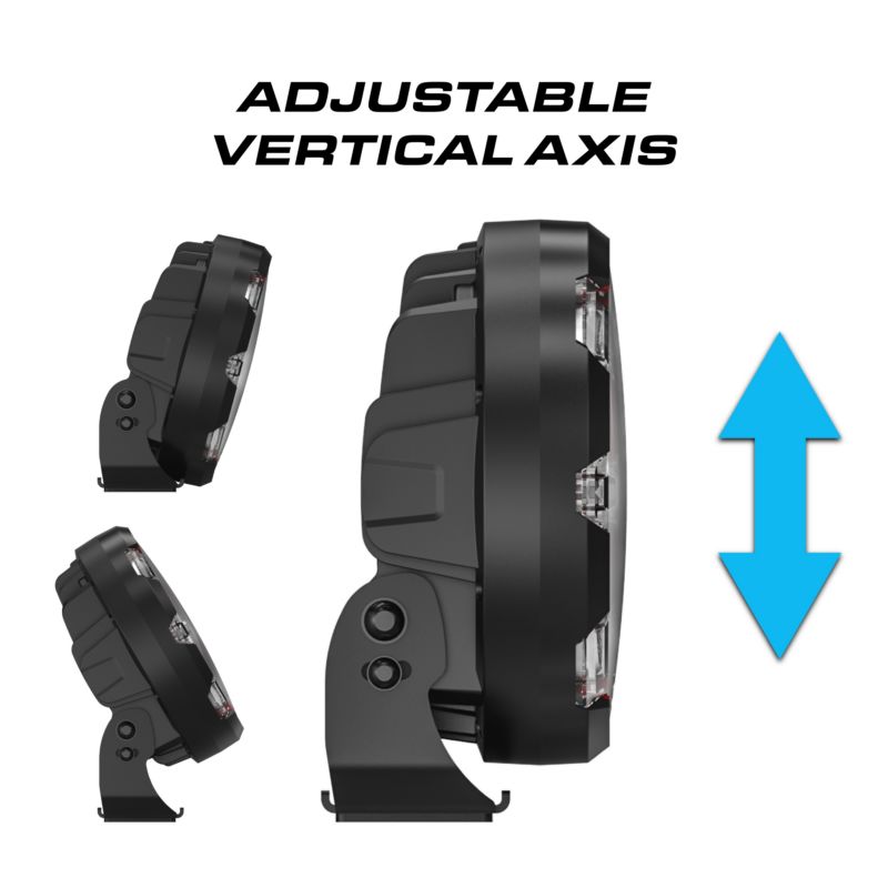 EngineeRed for the extremes, the Feniex 7" Driving Light is built to outperform when visibility matters most. From rugged trails to demanding work zones, its IP69K waterproof rating and included mounting bracket make it ready for whatever the road throws your way. Fully compatible with any 12VDC+ controller, the 7" Driving Light is power, precision and reliability packed into one bold form. Offering three distinct beam modes - Spot, White DRL and Amber DRL - this light adapts on demand. The high-output Spot beam delivers 12600 lumens for long-range visibility, while the White and Amber DRLs provide 200 lumens each for enhanced daytime awareness. Built with durable housing, simple installation and multi-function performance, the 7" Driving Light is ideal for off-roaders, first responders and work vehicles.