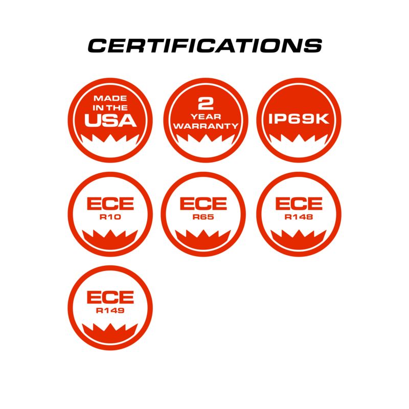 - Lumens: Spot - 12600 Lm, White DRL - 200 Lm, Amber DRL - 200 Lm